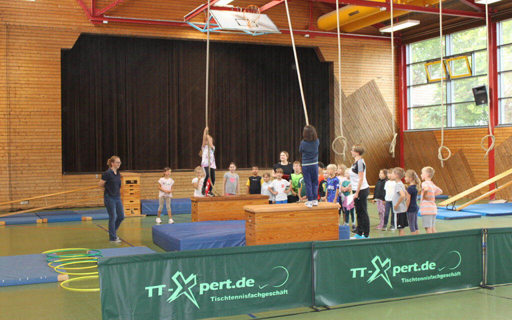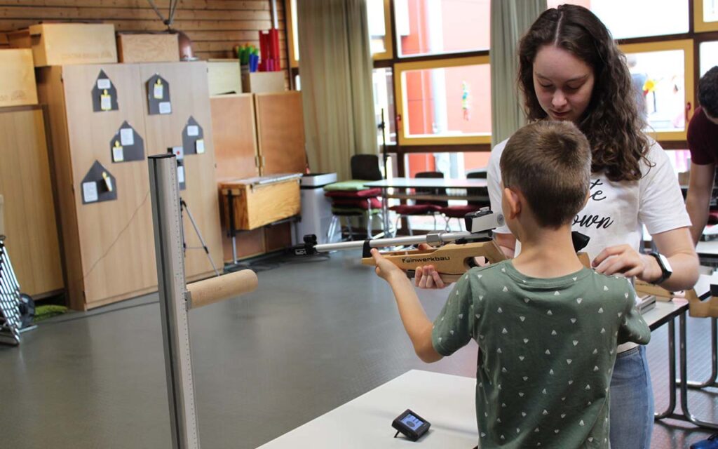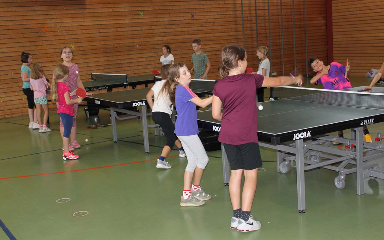 Von Fußball über Volleyball, Tischtennis und Turnen ging es zu modernen Formen der Bundesjugendspiele wie Zielwerfen, Slalomlaufen und Zonenspringen. Fahrradübungen mit Unterstützung der Kreisverkehrswacht und kindgerechte Schießübungen des SV „Spielhahn“ Aulzhausen e. V. rundeten das Programm genau wie Taekwondo und SCAT ab.